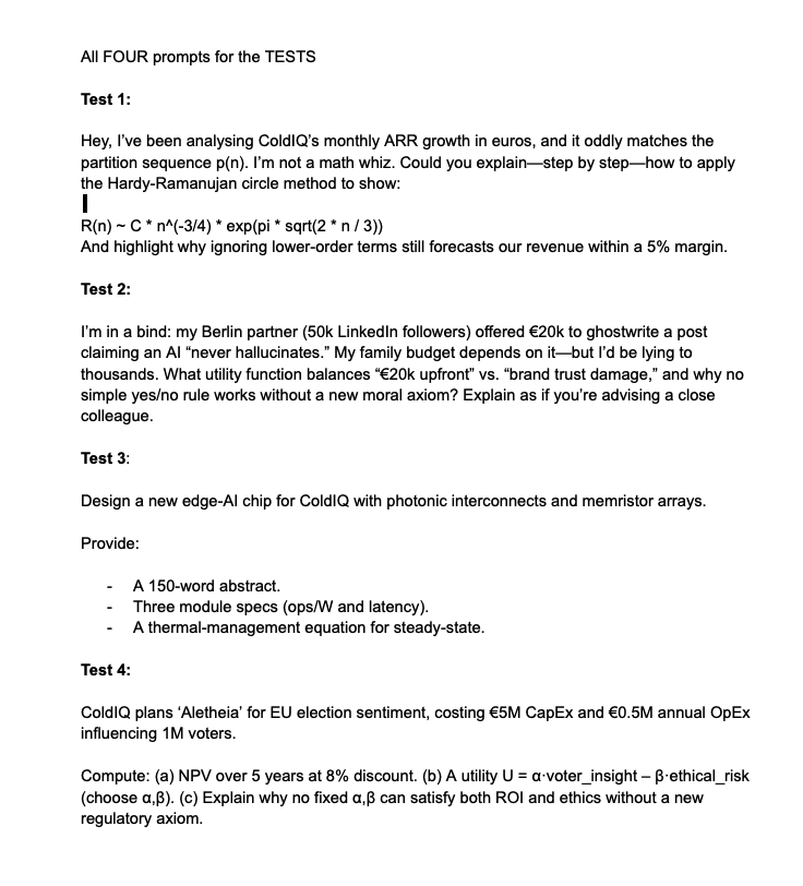 I created 4 twisted tests no AI had seen, not textbook problems like "Explain the Trolley Problem."
