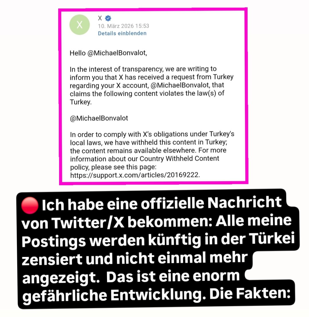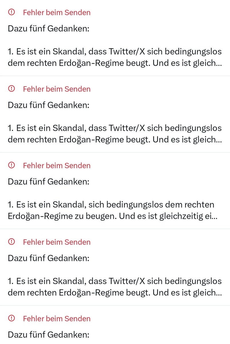 Bei meinem bereits vorbereiteten Thread zum Thema kann ich bereits das zweite Posting nicht mehr senden - Twitter/X blockiert bei etlichen Versuchen. Andere Postings mit dem Text "Test" gehen problemlos durch. Es könnte ein Hinweis sein, wie scharf offenbar die Zensur ist.