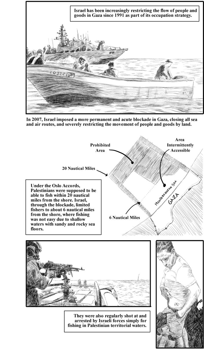 Life in Gaza is defined by the sea. Small-scale fishers are the heart of that life. Since 7 Oct, Isrl has denied all fishers access to the sea destroying 75+ per cent of the fishing sector. This destruction is one way that Isrl has starving Palestinians since 1991