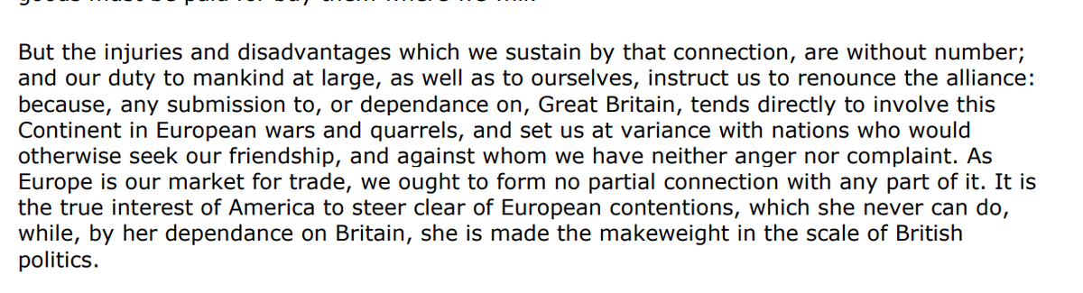 Otóż: wikłaniem się w "Europejskie Wojny". Ich zdaniem jednym z celów uzyskania niepodległości jest oderwanie się od wpływów Brytyjskich, Francuskich czy Hiszpańskich.