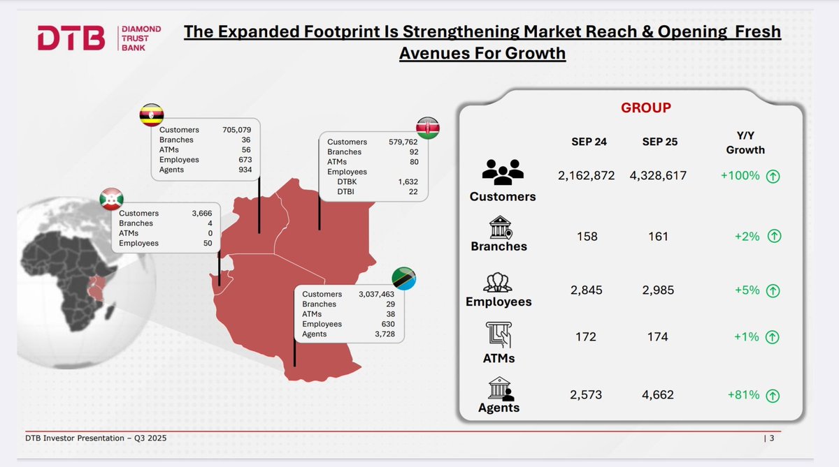 1. DTB has over 3 million customers in Tanzania, 705,000 customers in Uganda and 580,000 customers in Kenya. The true definition of an East African bank.