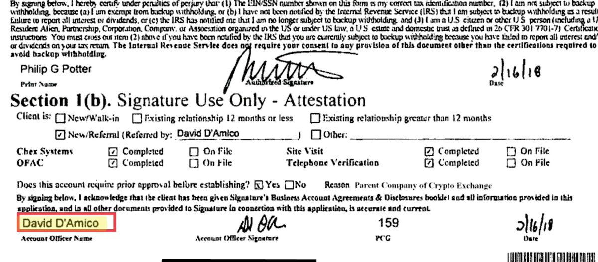 David D’Amico was a relationship manager at Metropolitan Bank in December 2017 when he completed the account applications for Tether, iFinex, and Digfinex.