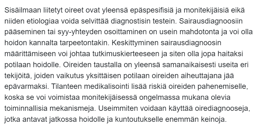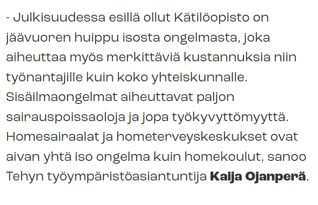 https://x.com/MinnaHaavisto/status/1739960333848981676?s=20Alussa kerrotaan erilaisista oireista, joita sisäilmaan liittyen koetaan. Perään todetaan, että oireet katoavat, kun oireita aiheuttavasta tilasta poistutaan. Eivät oireet katoa, ne helpottuvat vähitellen. Sanavalinnalla luodaan tarkoitushakuisesti väärää mielikuvaa. 2/