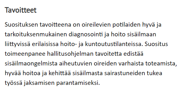 https://x.com/MinnaHaavisto/status/1739968170398491048?s=20Suositukseen on koottu valtava määrä tekstiä. Iso osa siitä on sellaista, mikä ei kuulu kyseisen suosituksen piiriin. Suureen tekstimäärään on kuitenkin helpompi hukuttaa olennainen ja käsitellä se vain ylimalkaisesti tai jopa jättää kokonaan käsittelemättä. 2/