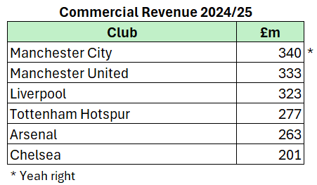 The club was already making around £60m from kit sales back in 2018 (as admitted to by Billy Hogan during the Liverpool vs. New Balance trial in 2019). Since then, the club's kit sales have skyrocketed and outperform every Premier League club by a distance.