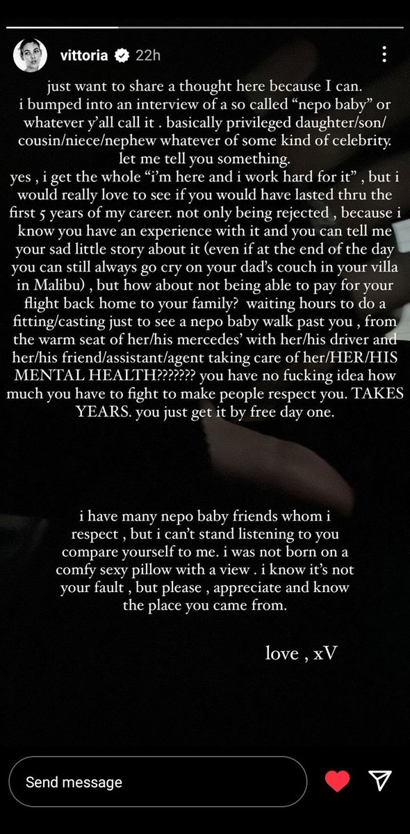 Vittoria Ceretti on actress Lily Rose Depp's comment on being a ’nepo baby’