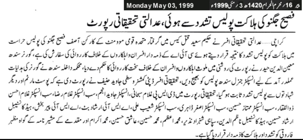 شہید کیا اسکے بعد مکر گئے کہ ہمارے ہاس چھوٹا اسلحہ نہیں ہوتا جب اخباروں میں تصاویر چھپ گئیں تو کیسے اخبارات کو سنسر کیا گیا کیسے جعلی آلہ قتل برآمد کیا گیا کیسے پوسٹ مارٹم رپورٹ چھپائی گئی اور وقاص شاہ کے اہل خانہ اس کیس کے بارے میں کیا کہتے ہیں یہ سب آپ تاریخی حقائق کی اس
