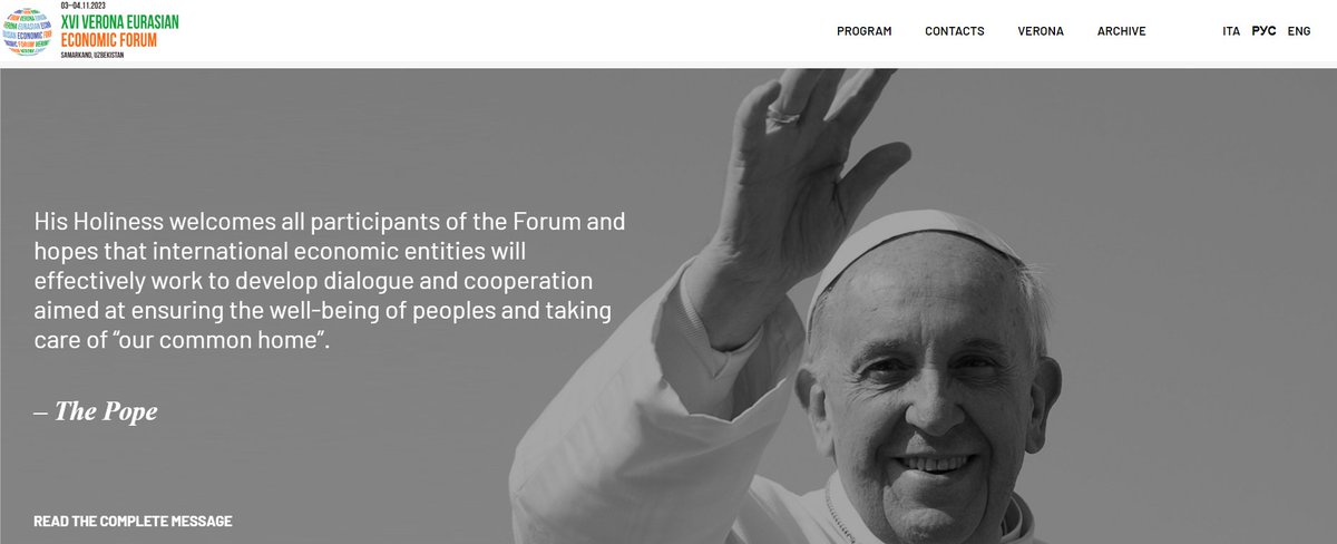 📌Nov 3-4 Uzbekistan: The 16th #Verona Eurasian Economic Forum. This is #Fallico's outfit. Keynote speaker: Alexei Overchuk, Russia's Deputy PM, who read out greetings from #Putin. Pope Francis on the website in full view.