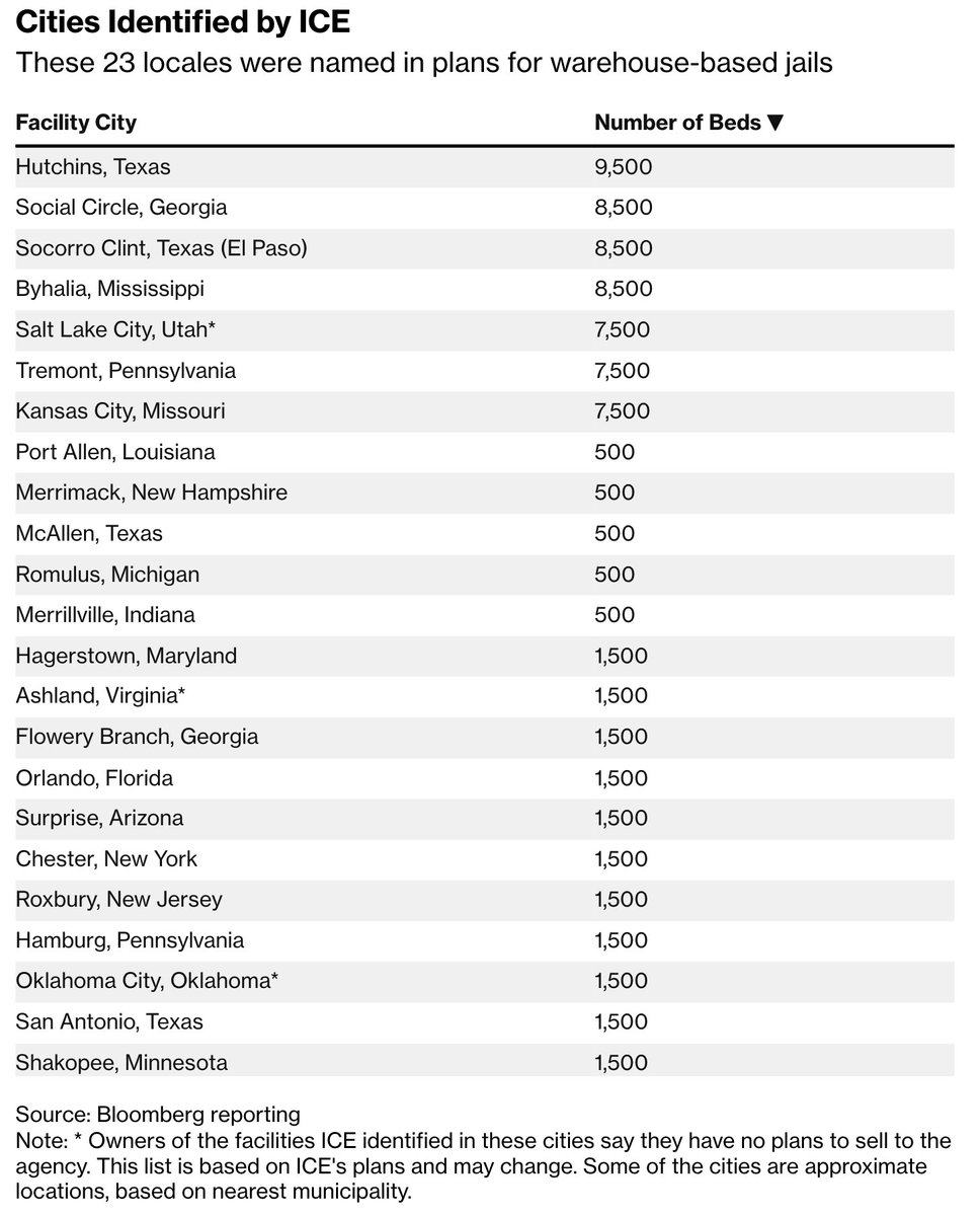 DHS is planning 23 new detention centers that would more than double the number of people in ICE custody, detaining an additional 76,500 people, according to Bloomberg. bloomberg.com/news/features/…