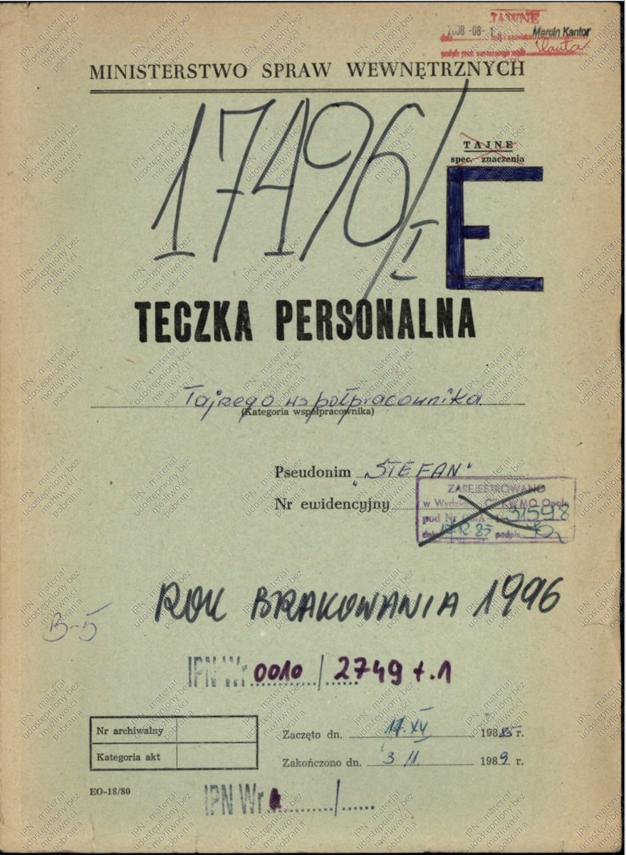 Ireneusz Maślak, ur. 11.03.1950 w Kaliszu, zatrudniony w Zakładzie Rekonstrukcji i Modernizacji Urządzeń Energetycznych "REMAK" w Opolu, został pozyskany do współpracy z komunistyczną Służbą Bezpieczeństwa 11 grudnia 1985 roku i przyjął pseudonim "STEFAN".