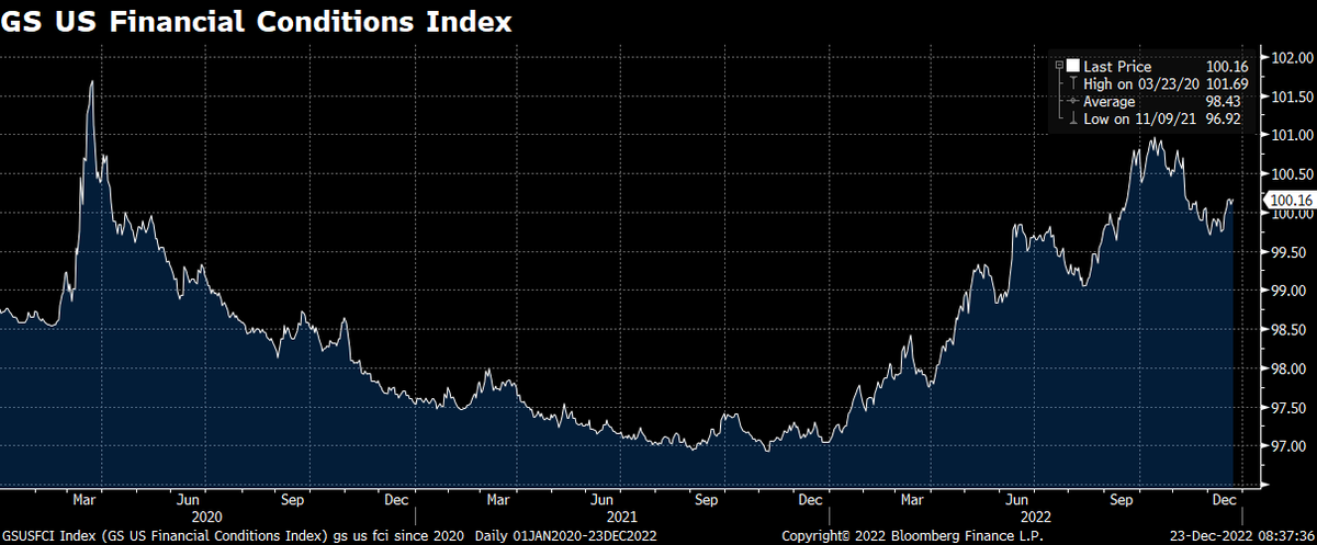Rapid rate hikes (the most in a calendar year since the 80s from the Fed) = huge tightening in financial conditions...