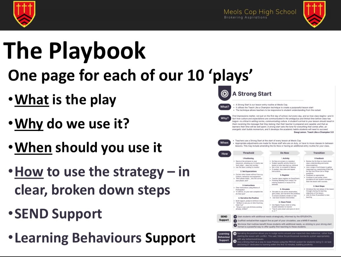 We’ve in chosen 10 core evidence informed ‘plays’ which we agreed were powerful strategies.