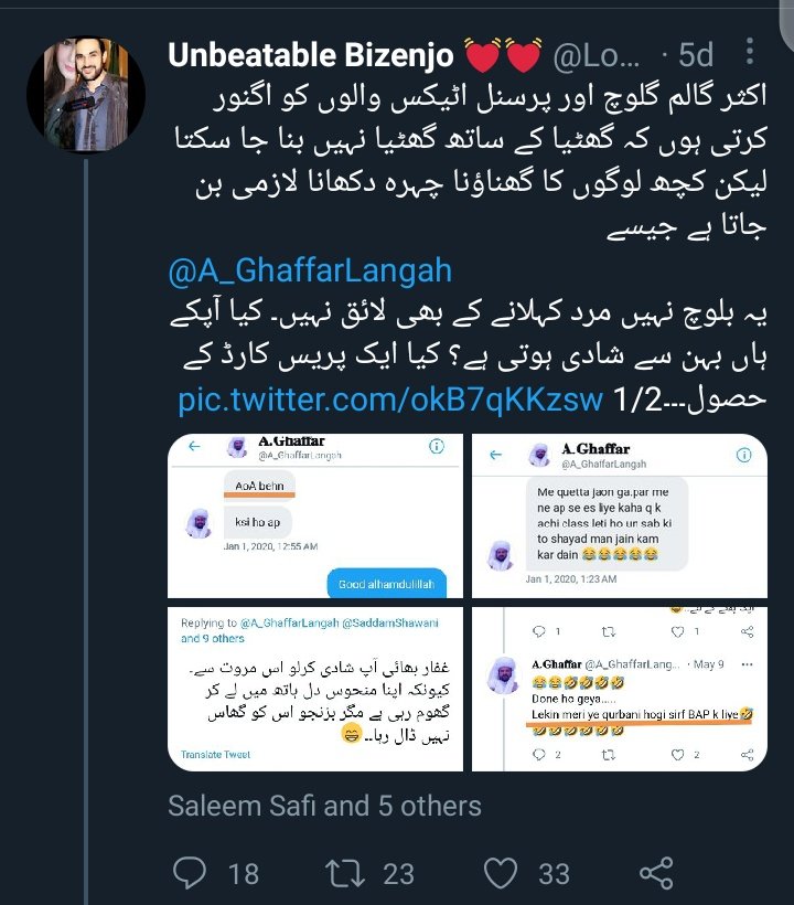 پہلے لڑکوں سے دوستی کرو۔ ڈی ایم میں اُنہیں آنے کی دعوت دو۔ اور ان سے راز نکالو۔ پھر جب بھی اختلافات شروع ہوئے تو ڈی ایم کی سکرین شاٹ ٹویٹ کرکے بلیک میل کرو۔ غفار لنگاہ کا اتنا قصور تھا کہ شادی کی آفر دے ڈالی اس ذلیل اور بدکردار ٹھرکی لڑکی کو۔۔ 👇