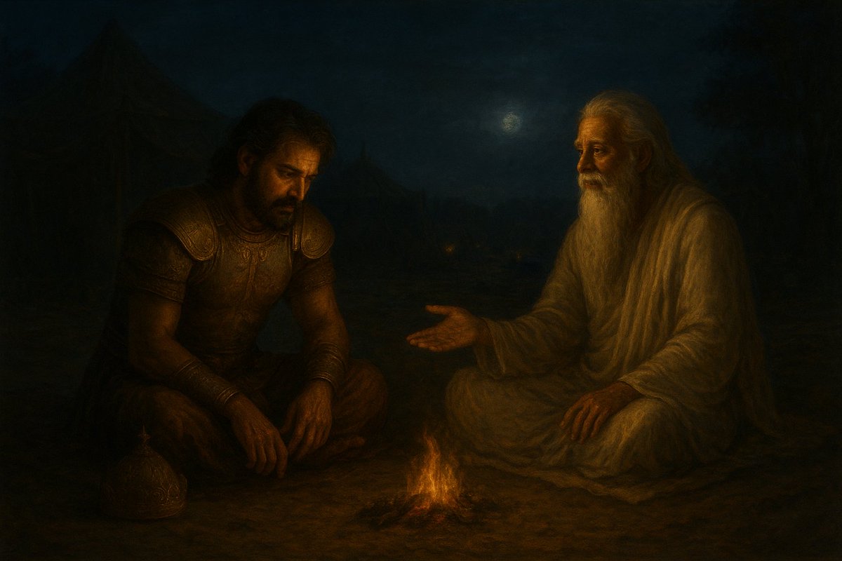 After Bhagwan Parashurama spoke, the sage Kanva addressed Duryodhana, urging peace and offering a perspective grounded in spiritual wisdom.