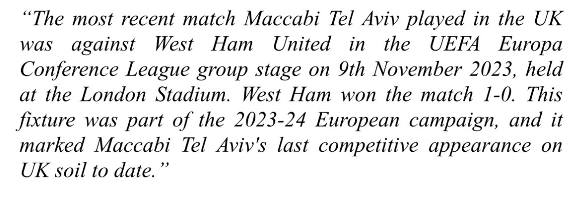 A reminder: Birmingham Council's Safety Advisory Group banned Maccabi Tel Aviv fans from the match against Aston Villa.