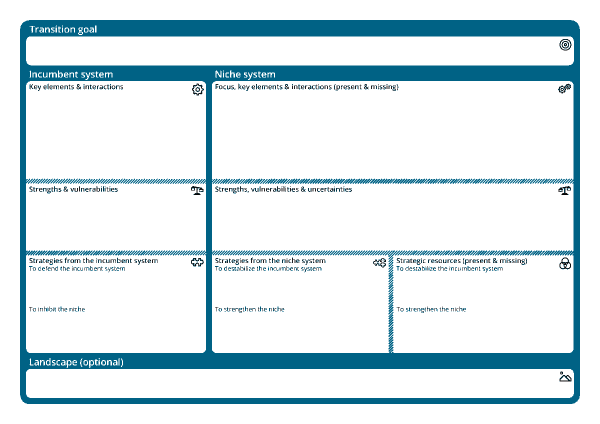 De in de wetenschap meest gebruikte theorie om transities te begrijpen is het Multi-Level Perspective (MLP), weergegeven in het plaatje hierboven. Dit beschrijft een bestaand (incumbent) systeem dat bestaat uit actoren, instituties en infrastructuur die elkaar versterken. 2/5