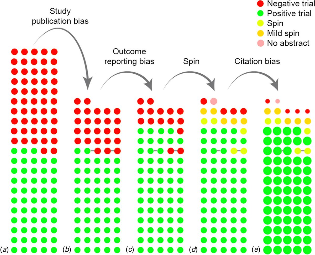 Antidepressant efficacy is inflated by the cumulative impact of publication bias, outcome reporting bias, spin, and citation bias on the evidence base.