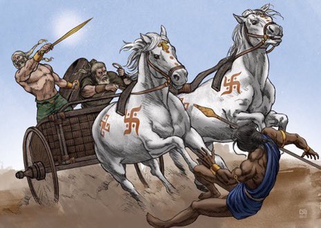 The PIE people were herder and warrior cultures originating from the plains north of the Caucuses. They ate a lot of meat and drank a lot of milk that (combined with their mythology) made them terrifying in combat even when not on horseback or in chariots.