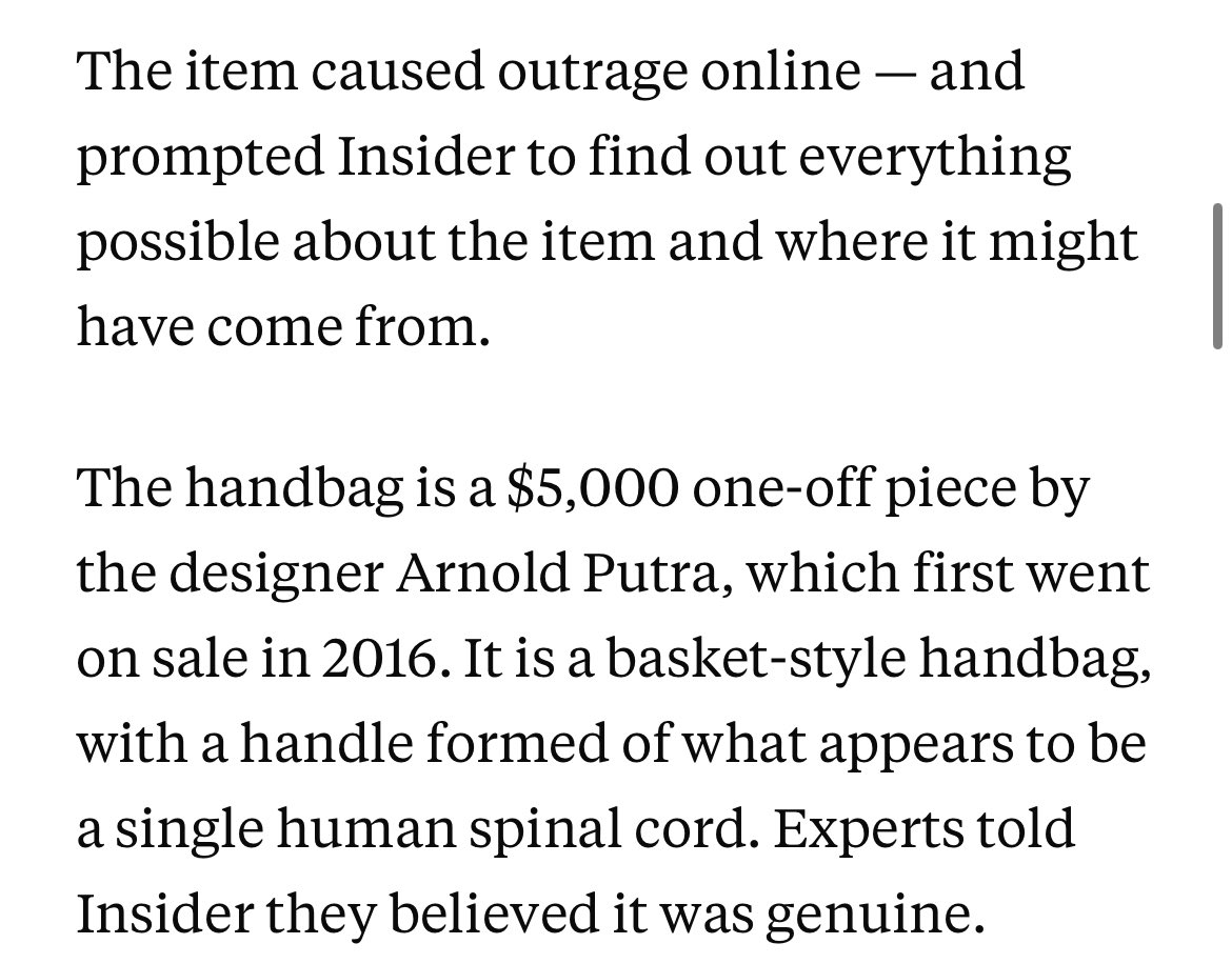 “Polar bear hair and sheep suede jacket // alligator tongue and human osteoporosis spine bag by me”