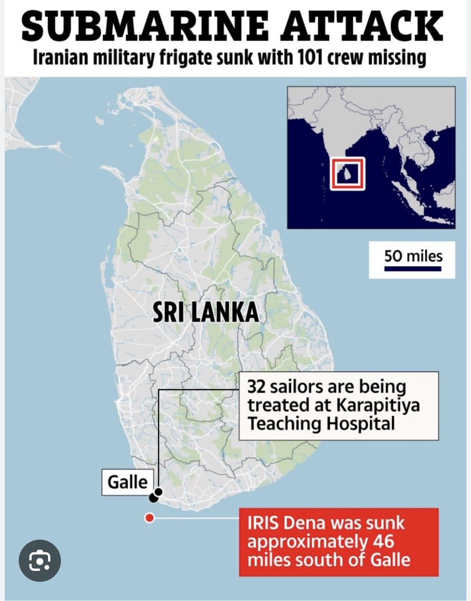 FACT 1: The map clearly shows the IRIS Dena was sunk 46 nautical miles south of Galle, Sri Lanka. This is over 1,247 km away from the Indian naval base at Visakhapatnam where it departed. Expecting the Indian Navy to physically escort every foreign ship across the globe is logistically absurd.