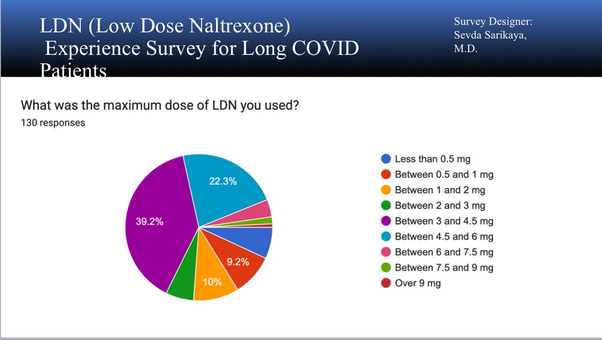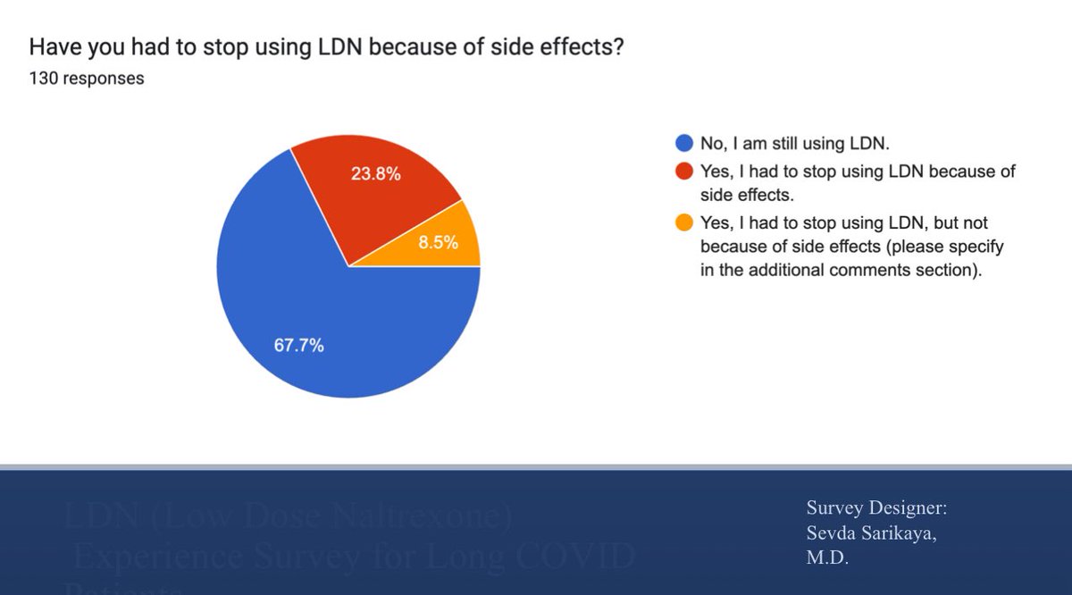 Here are the results of my LDN Experience Survey with 130 participants. If you’ve had any experience with LDN—good or bad—please take the survey linked in the quoted post. I’m planning to prepare similar surveys for other “popular” medications in our community. I’d love to create a website to bring them all together. If anyone is interested in helping build the site, you’re very welcome! (1/5)⬇️