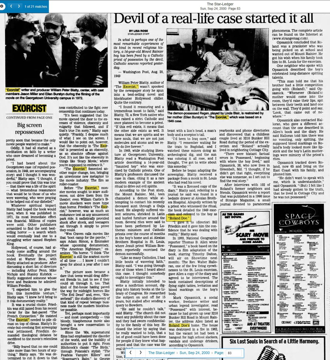 In 1949 a devil possessed a boy and was exorcised, and if we look at the 1949 reporting we'll get the clues for what that meant.