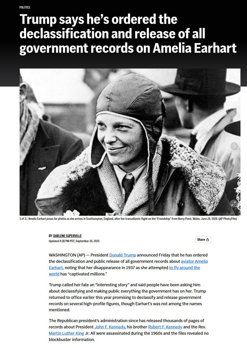 Amelia Earhart DECLAS (Requested Decode) 1. Donald Trump has announced he has ordered the declassification of all records on Amelia Earhart so I'll go ahead do that.