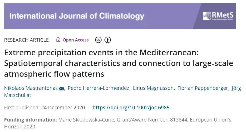 Our paper about large-scale atmospheric flow patterns and extreme precipitation events over the Mediterranean is now available in the Int. J. Climatology #RMetSJournals#OpenAccess#OpenScience rmets.onlinelibrary.wiley.com/doi/10.1002/jo…