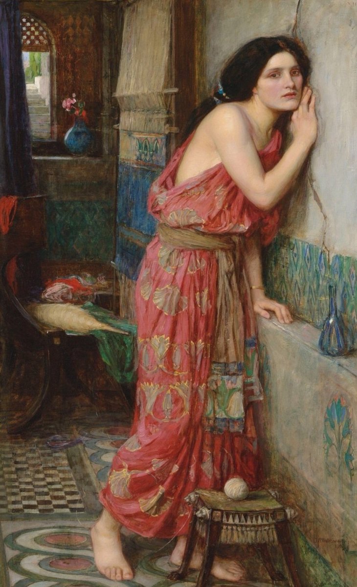 En esta preciosa pintura de Waterhouse vemos a una joven escuchando a través de una grieta de la pared. ¿Qué habrá detrás?