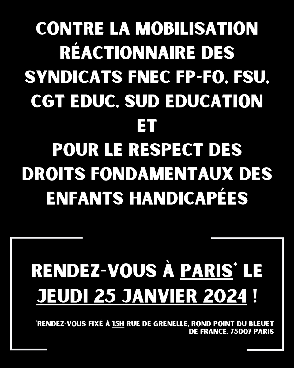 Quand @force_ouvriere demande plus de moyens pour institutionnaliser, sĂ©grĂ©guer et priver de libertĂ© les enfants handicapĂ©Es au nom des conditions de travail, nous demandons quant Ă nous le respect de leurs droits fondamentaux et des moyens pour les inclure en classe ordinaire.