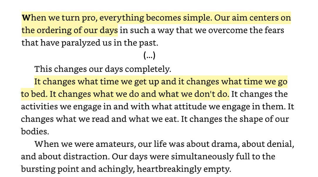 In ‘Turning Pro’ Pressfield captures the process when one gets serious about his mission/calling in life, and goes all in on it.