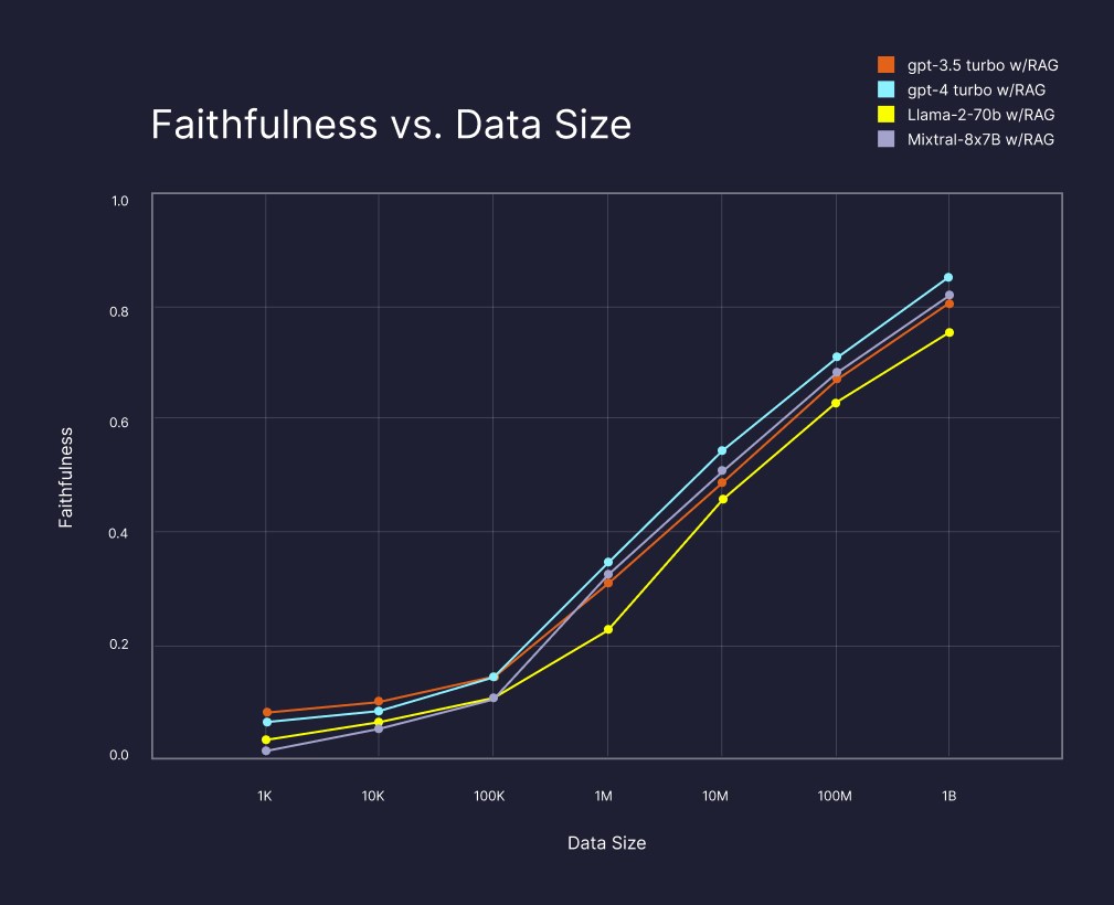 @pinecone showed that RAG makes LLMs better. The more data LLMs can retrieve from, the better (higher faithfulness = more factually correct).
