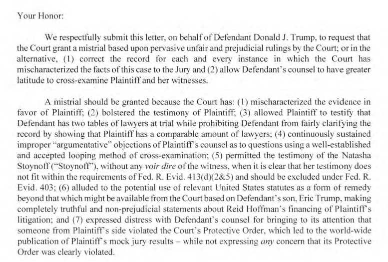 Carroll: “I made that clear, that Bergdorf’s is not a place that I’m afraid to enter” @CourthouseNews@CourthouseNews Judge Kaplan began the day by denying Trump's motion for a mistrial, filed this morning