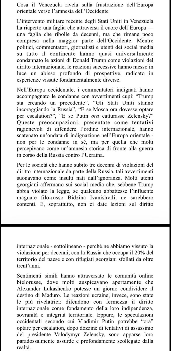 https://twitter.com/echofm_online/status/1877425346590417122Putin,ma anche “questo popolo”.Io, invece, non mi sono offeso. Perché mai bisognerebbe rispettare i russi come popolo oggi?Per aver permesso a un dittatore degenerato di mettersi al comando? Per aver accettato con soddisfazione il suo stile da bullo e l’estetica da bassifondi?/2