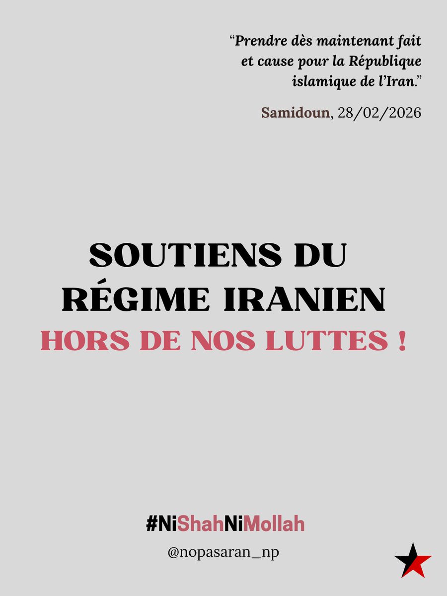 Déjà, il y a deux semaines, un des leaders de la LJR avait appelé à soutenir la "Résistance iranienne" au côté de drapeaux de la république islamique d'Iranhttps://x.com/Nopasaran_a/status/2028752089363468468?s=20