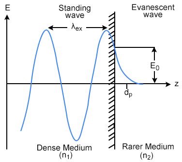 •Evanescent Wave: This is a non-propagating electromagnetic field that exists in the rarer medium (