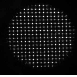 This image displays the output from a Shack-Hartmann wavefront sensor. The image sensor captures an array of focused spots created by a microlens array.