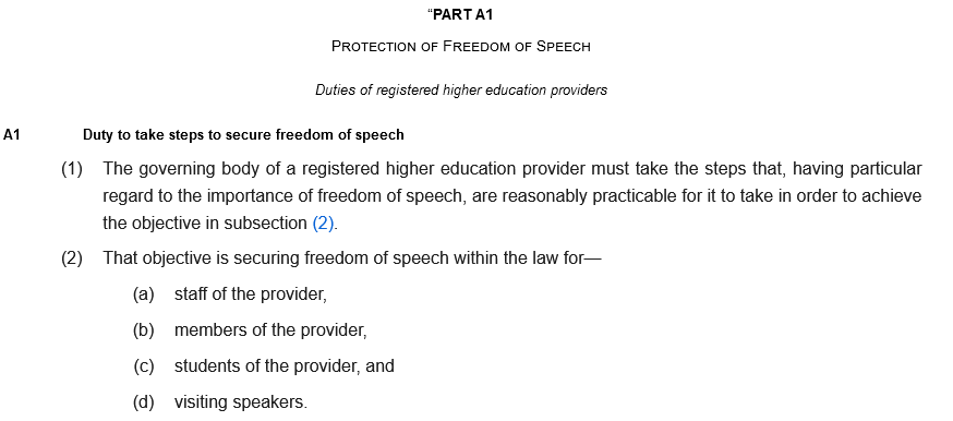 https://twitter.com/ObhishekSaha/status/17913853703298585092/ The Higher Education (Freedom of Speech) Act 2023 - henceforth shortened to HEFOSA - has key duties for unis coming into force from Aug 1, 2024 related to "securing freedom of speech within the law."