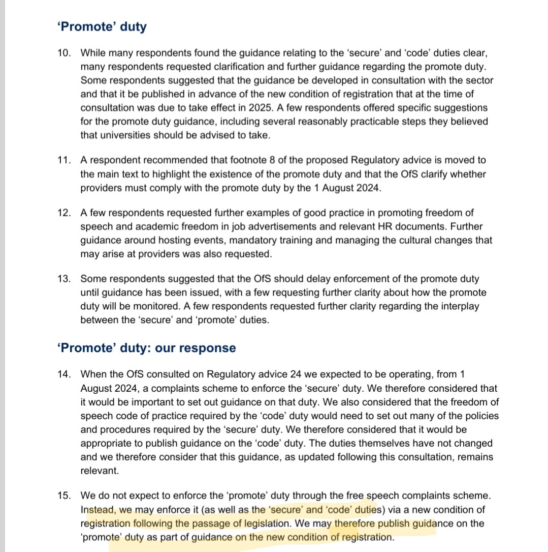 https://twitter.com/lucaf_london/status/17913539076978774762/ The Higher Education (Freedom of Speech) Act is a hugely significant piece of legislation whose key provisions come into force on Aug 1. The proposed regulatory advice gives guidance on the duties to secure free speech and maintain a code of practice. heterodoxacademy.org/blog/protectin…