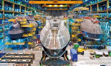 2). Astute class nuclear submarines being build in the Devonshire Dock Hall, Barrow-in-Furness.