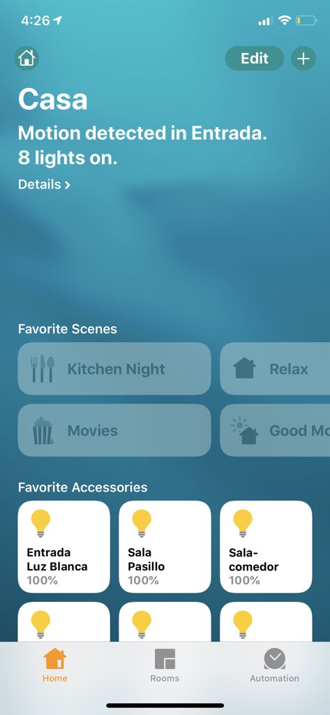 Primero la centralización: operar todos los dispositivos, bombillos, aires y sensores desde un mismo App. En este caso el HomeKit de Apple.