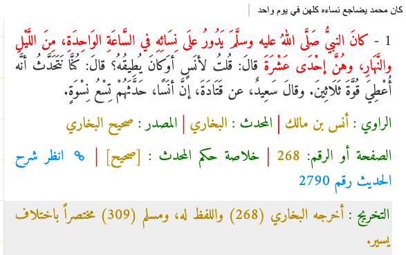 وقد يكون لهذا علاقة بارتفاع شهوة محمد الجنسية، وهذا ظاهر في بعض المرويات، واعترف هو نفسه بذلك أيضاً