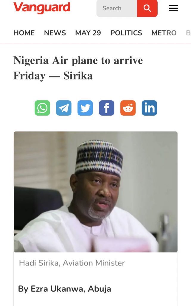 The allegation against Hon Nnolim. A diversion from the main substance of deception and the unwarranted stunt he pulled on May 26th. I insist that Nigeria Air is no where close to what was touted by Sirika and the theatrics of May 26th was unjustifiably in bad faith. Sirika had