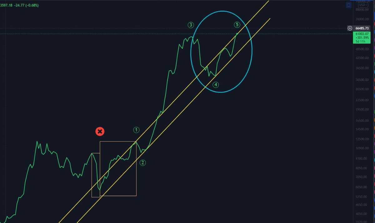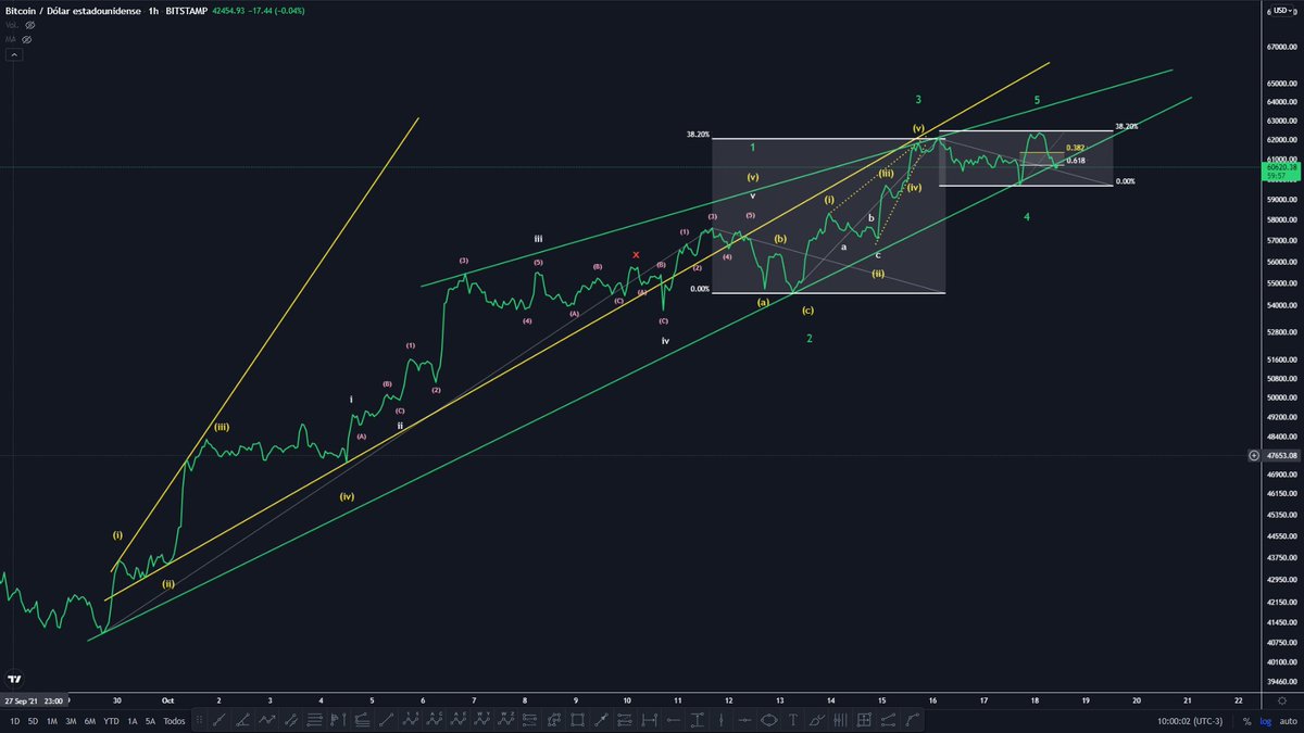#BTC Que ganas de ir short la verdad... Si confirma el quiebre de la dir. inferior verde. La misma 0-2 podría ser 2-4, digo eso solo porq toda la suba de la 1 verde es un 0.382 de 3 y esta un 0.382 de la supuesta 5, si a eso le sumo q Neely dice q las ondas 1 ext forman una