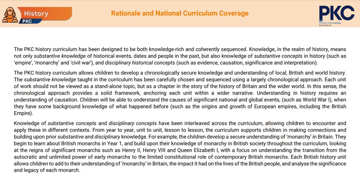 Knowledge in the PKC history curriculum has been carefully chosen and sequenced to enable this progression, as shown in our subject rationale below: