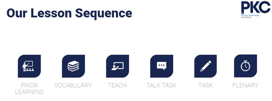Here is an example of a lesson structure we use in the PKC curriculum for some subjects: