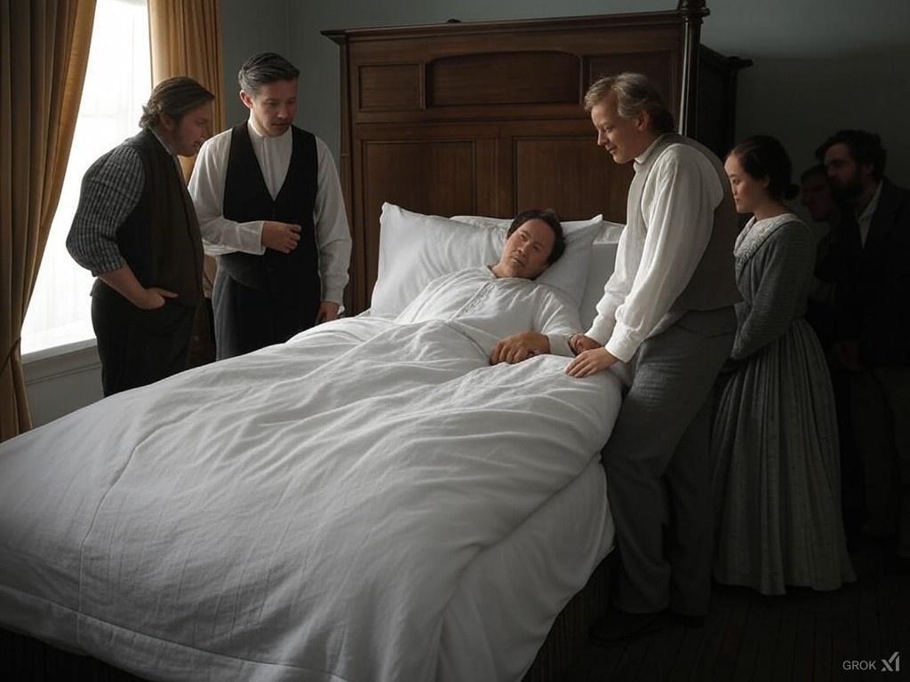 He further stated that he presently felt easy, and observing his situation found that he was in the upper part of the room near the ceiling, and could see the body he had occupied lying on the bed, with weeping friends, standing around as he had witnessed in many cases where people had died under his own observation.