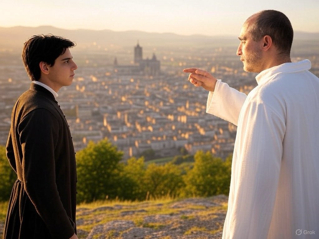I saw an angel of the Lord. After he had talked a little with me, he placed his right hand on my left shoulder. His eyes were of a dark brown color, but full of glory. His voice was clear, but full of power and authority. While in his presence I beheld very high mountains. He told me that they were the everlasting hills, over or by which the Latter-day Saints were going to their gathering place.