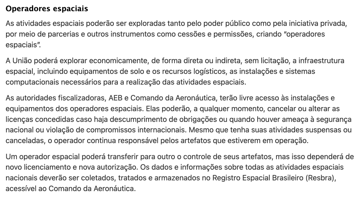 Agora para você ter uma empresa na área espacial será necessário obter uma licença de operador (o que é totalmente diferente de uma licença para um lançamento, por exemplo).