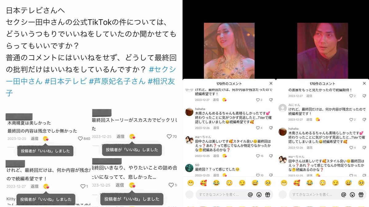 ー公式Tiktokがドラマ最終回を批判するコメントに「のみ」イイネを押しまくる
